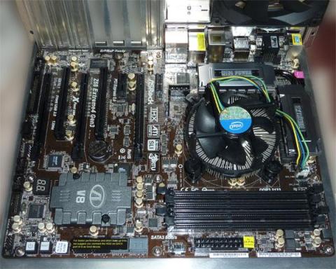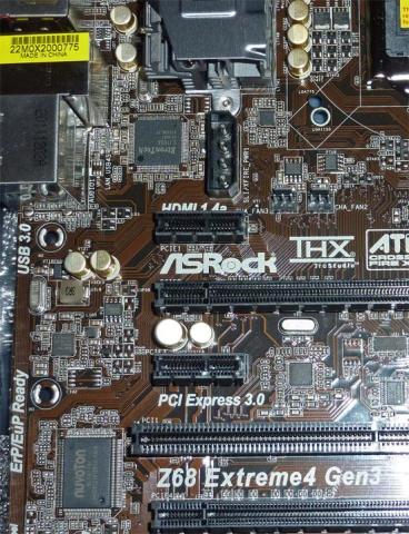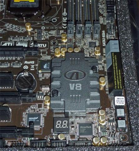 V8 って書いてあるヒートシンクの下に Z68 があります(多分、間違いない!)