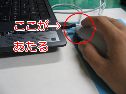右のUSBポートが手前にありすぎて、マウスを挿すと端子部分がマウスに干渉して邪魔になります。