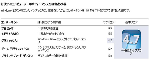 ・Windowsエクスペリエンスインデックス