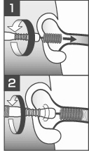 (1)耳の奥を突かないように注意し、矢印(※図1参照)の方向に回しながら、耳の穴にゆっくりと入れてください。