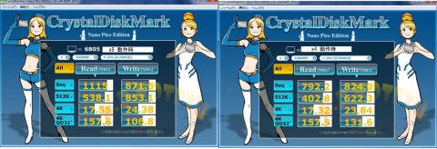PCIe Gen2 x8スロットに実装時、現状では3台のSSDでのストライプ構成で、