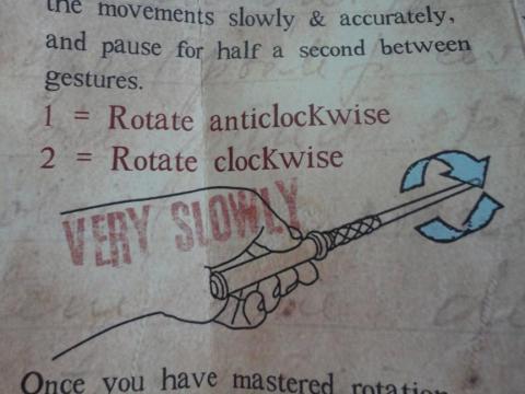 特に横に振るとか、横をたたく動作は杖を振る訓練が必要ですね。