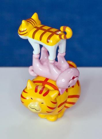 小っちゃいネコの背中も平らでそんなに難しそうではなかったのですが、思った以上に表面が滑る塗装なので短時間でピラミッドを作ることが出来ず断念しました(--;