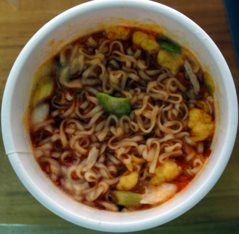 う~ん、チキンラーメンにラー油垂らしただけ…