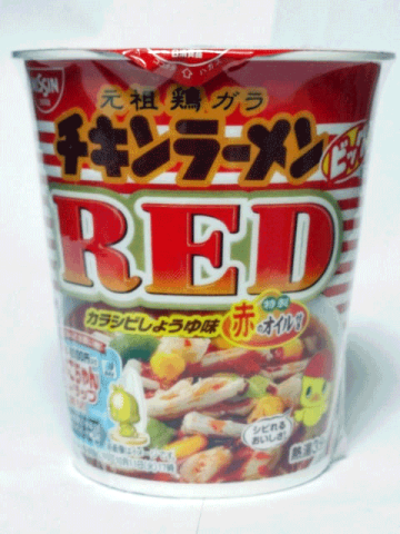 「赤」を基調としたチキンラーメンの限定ビッグカップ。