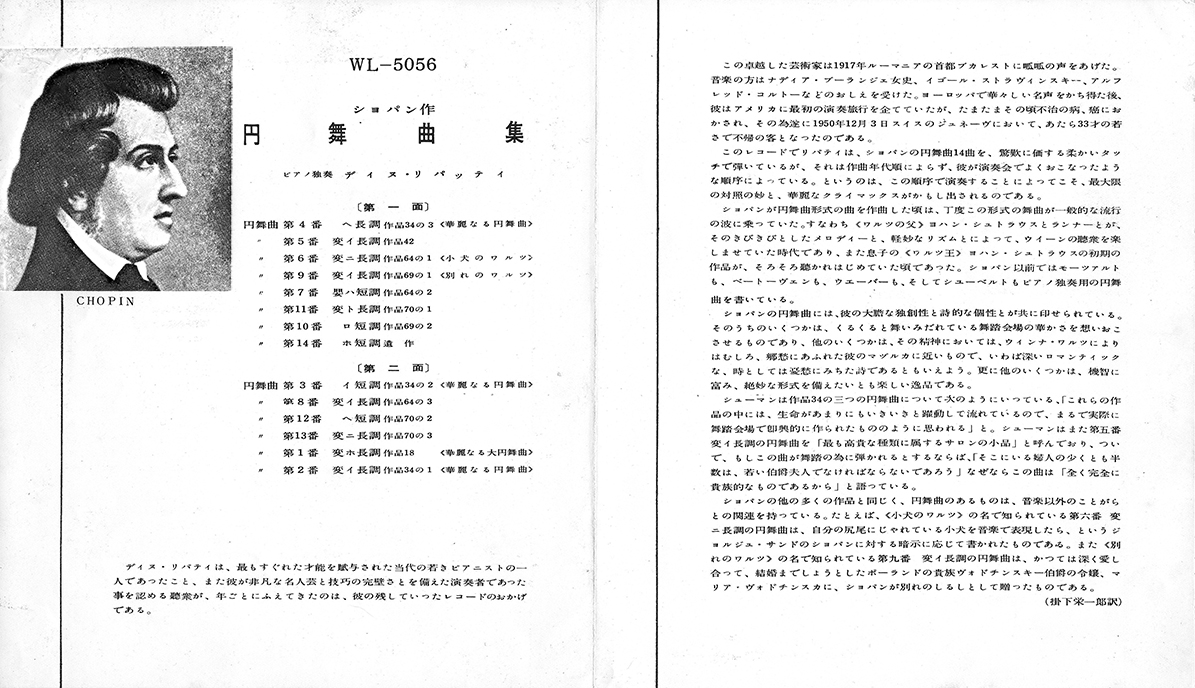 ジャケットのなかに4頁のリーフレット(上記写真)が入っていました。(174×202mmオフセット)