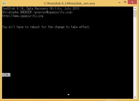 (12) 再起動したら情報が反映される趣旨のメッセージが表示されて終了
