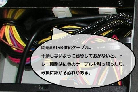 設置時にトレー開閉含めてきちんと調整して、何度も開閉テストを繰り返しておかないと、即座にケーブルがフレームボックスに激突します(汗)