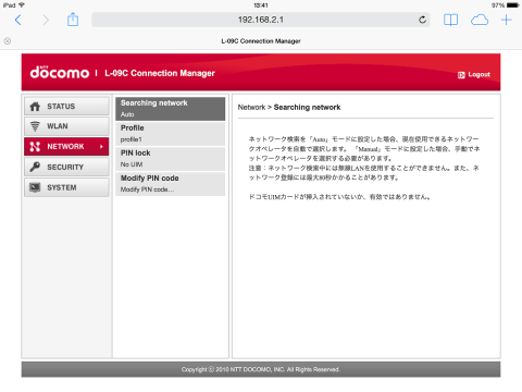 電源起動時にまれにドコモUIMカードを認識しない場合がある。