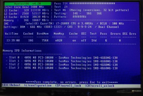 Windows7標準のメモリー診断をパスしたので、MEMTEST+にてチェック。