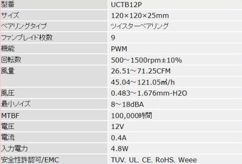 今回組んだPCにはこのレビューのUCTB12Pを4点と140mmのファンUCTB14Bを1点使って組みましたが、とても静かな静音PCになってたいへん満足しています。