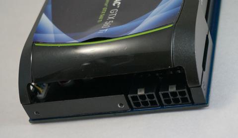 補助電源コネクタは6pix2でカード後方にコネクタを持つ。カード長+αのスペースが必要になる。ただ後述する発熱の関係でなるべくスペースはあけたほうがいい。