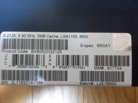 CPUは最初、もう少し安いものかi3-2100にしようと思ってましたが、グラフィックが2100はHD2000に対して2125はHD3000。ということで2125に決定。
