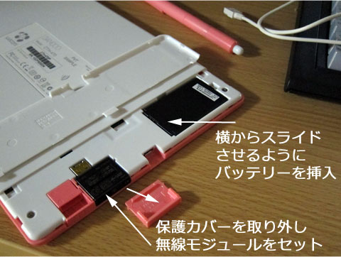 3.バッテリーと無線モジュールを正しい向きで優しくセットします。