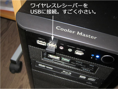 4.パソコン本体に無線レシーバーをUSB接続します。