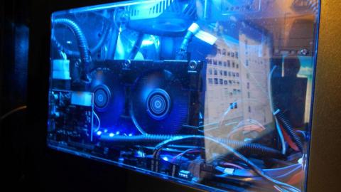 ラジエータファンとポンプ部のIntelロゴも光ってるのですがまったく目立ちません