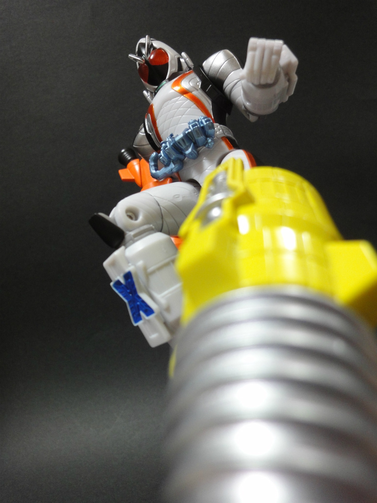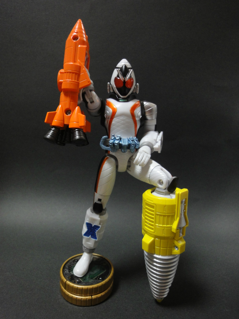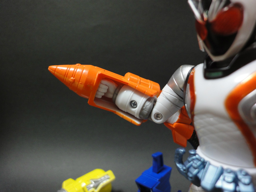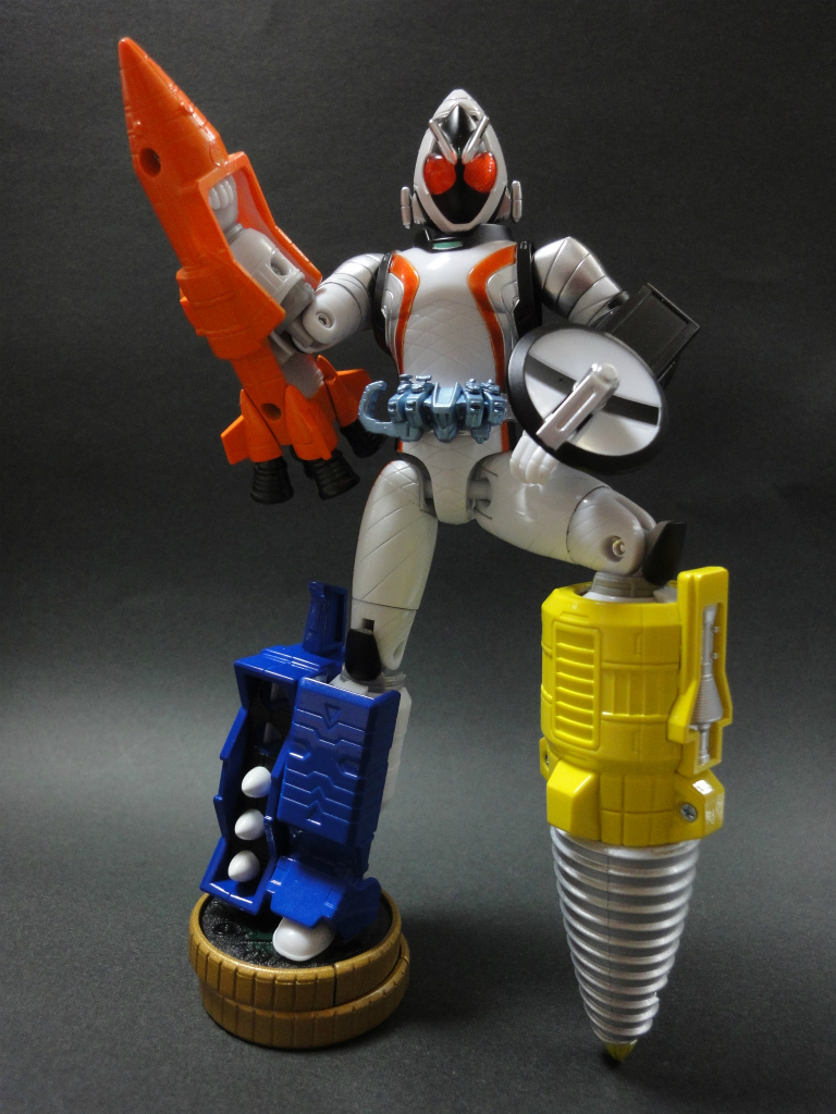 FMC(Fourze Module Change Series)はディケイドのFFR(ファイナルフォームライドシリーズ)やWのWFC(ダブルフォームチェンジシリーズ)、オーズのOCC(オーズコンボチェンジシリーズ)の流れを汲むお子様向けのアクションフィギュアで、コレクターターゲットのアイテムに比べ格段に丈夫にできており、怪人と闘わせてガンガン遊べる優れたおもちゃです。