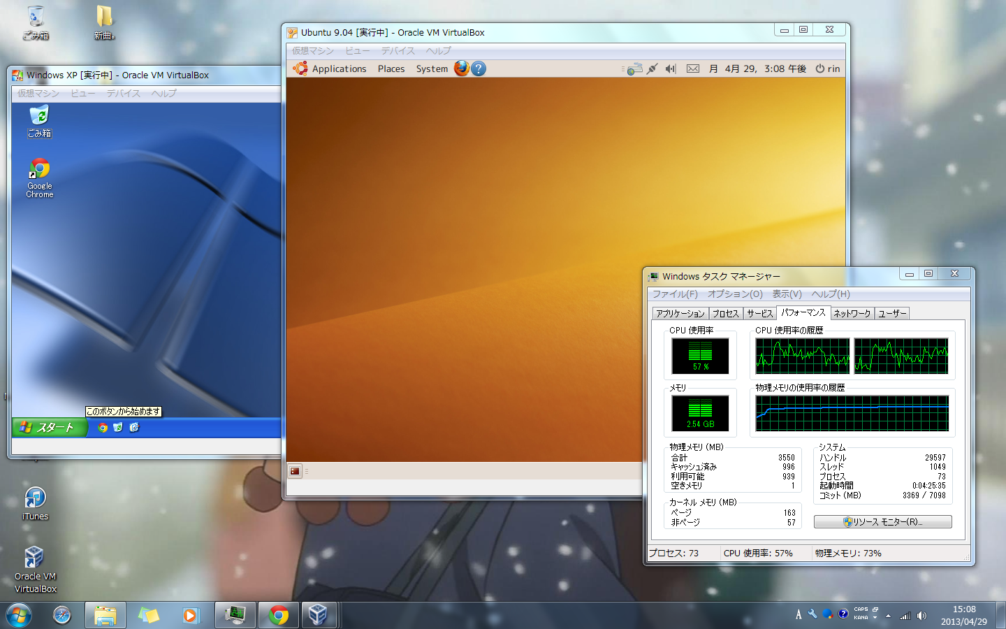 OSはMSDN版Windows XP Professional SP3とUbuntu 9.04をMSDN版Windows 7 Ultimate x86上で動かしています。