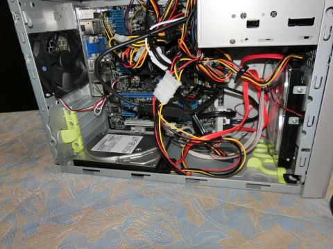 PCのフロントの一部を開けてそこからケーブルを出しています。