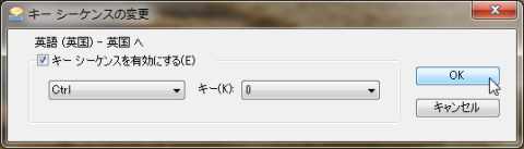 「キーシーケンスを有効にする」にチェックを入れてキーボード言語設定切り替え用のホットキー(デフォルト:Ctrl+0)を設定して「OK」を選択。