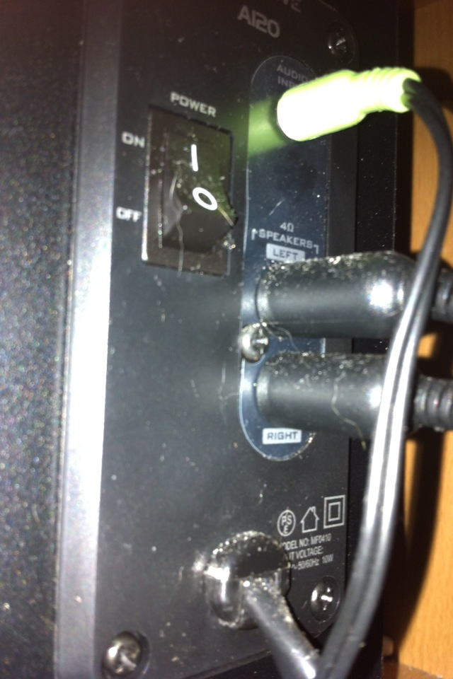 写真はウーハーBOXで,アンプはウーハー内にあり,一番上のミニスレテオピンが,ボリュームコントローラーから来ているものという事ですね.