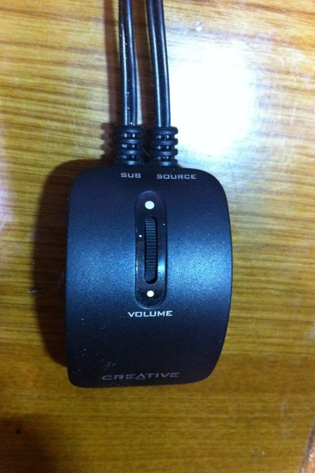 こちらのスピーカーは PC→ボリュームコントローラ→ミニステレオピンでウーハーへ