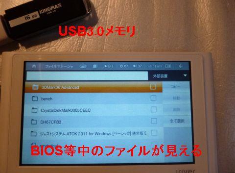 上記のファイルブラウザと連動するが便利な機能である。USBデバイスのホストとして動作し、ファイルの受け渡しやUSB給電による充電も可能。ただ相手によっては何も起こらない...orz。検証した結果