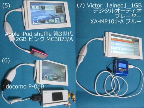 Canon IXY DIGITAL、iPod shuffle、docomo P-01Bがだめでした。