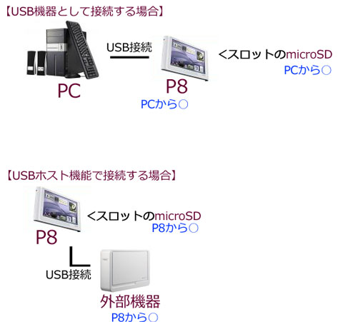 P8から、USBホスト機能で接続した他のデバイスへも、