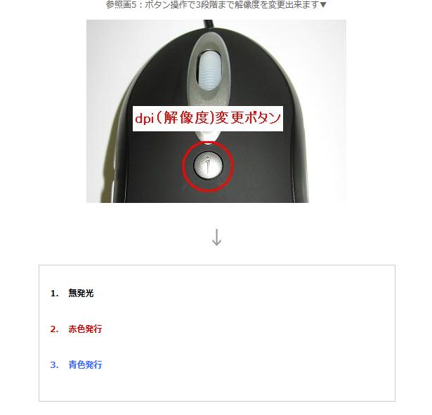 dpi(解像度)変更ボタン操作で、3段階まで解像度を変更する事が出来ます。