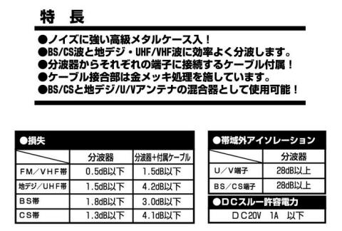 分波器ですが(分配器は等分しますが)分波器はいろいろな放送波を周波数帯別に