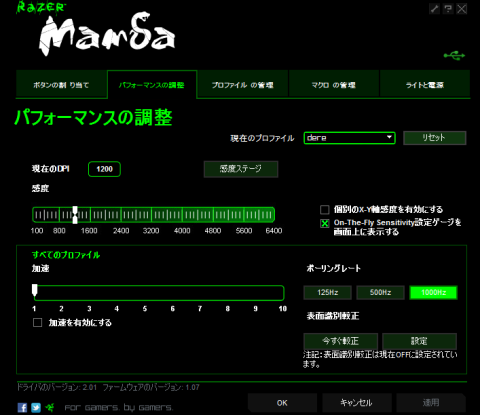 ・設定できる項目は多めですが、使うのは恐らくボタンの設定、DPI設定,ポーリングレート設定位だと思います。