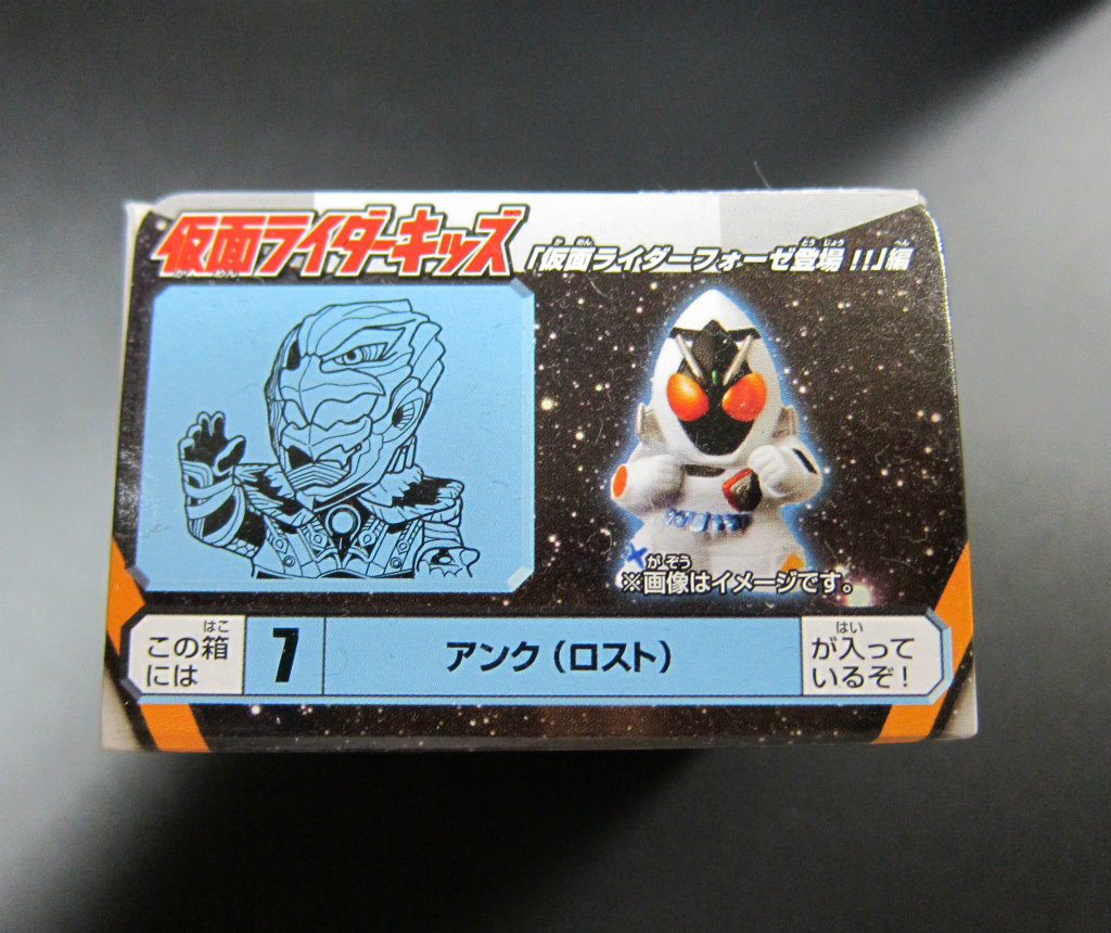 仮面ライダーキッズとはバンダイから発売されている食玩で、箱の中にラムネ菓子とソフビ製の指人形が入っている息の長いシリーズです。