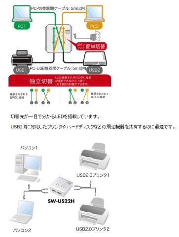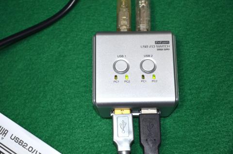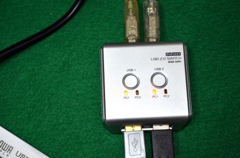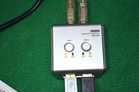 プッシュボタンでPC1、PC2を切り替えプリンター等に