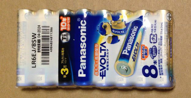 「値段は高いけど長持ち」のPANASONIC乾電池「EVOLTA」の単三×8本です。値段は、単三も単四も余り変わらない様な感じでした。単四の方が少し高いみたいです。