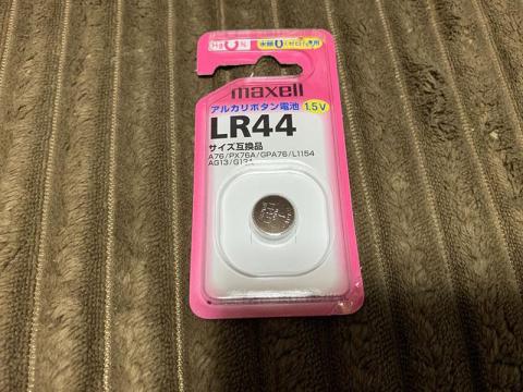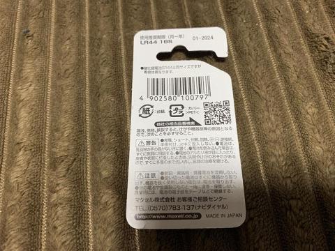 昭和の時代には家庭用機器でも広く見られた電池ですが、最近では殆ど利用機会が無く、手元に予備も用意していませんでした。そこで日本製造品であれば何でも良いかと思い、ドラッグストアに行ったついでに買ってきたのが、このmaxell製LR44となります。