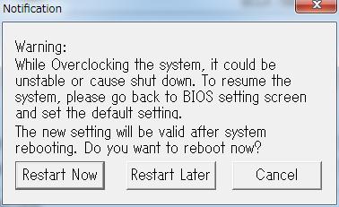 再起動すると、定義してある設定で起動します(オーバークロックができます)