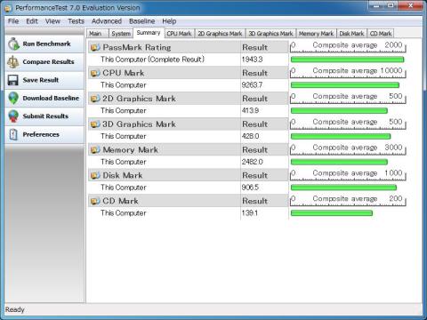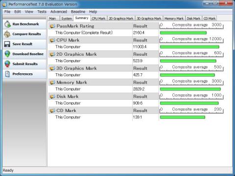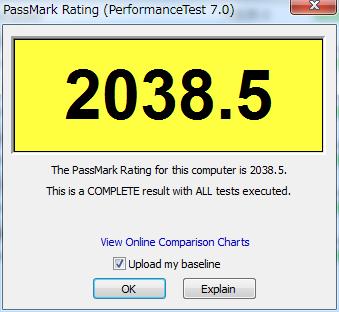 ベンチマークソフト(PerformanceTest 7.0 64bit版)で、各1回のみですが、