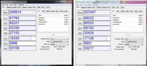 いくつかの有名な(と思われる)ベンチマークソフトを使い、定格動作とOC動作を比べてみました。