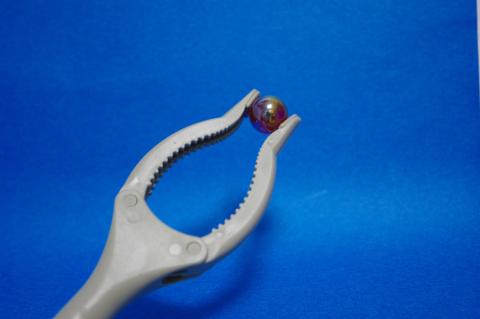 先端には、ゴムが付いてるので、床に落ちたビー玉が拾えるよ。