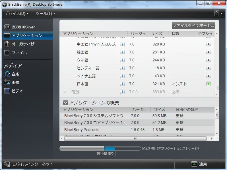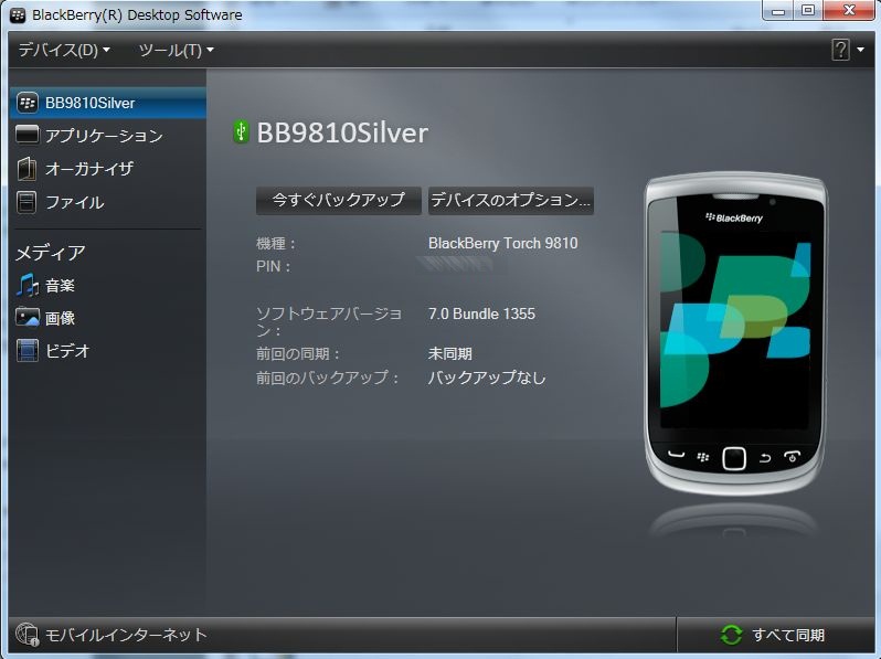 とりあえず最新の BlackBerry Desktop Software をインストール。
