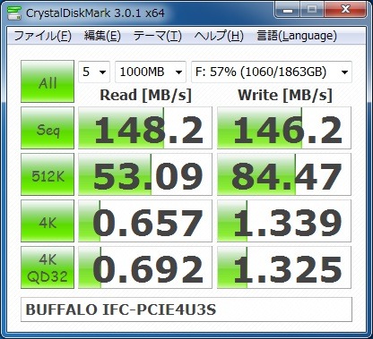 HDDレベルではオンボードのSATAやUSB3.0並みの速度が出るし、非常に安定しています。