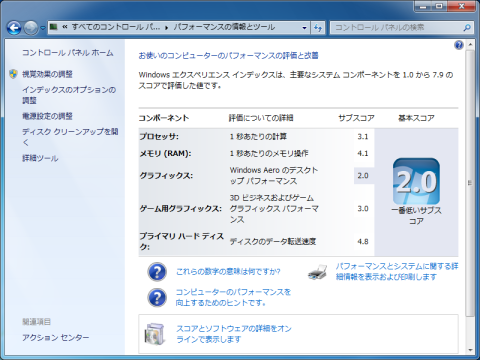 グラフィックメモリーが64MBでもAeroが有効になっています。