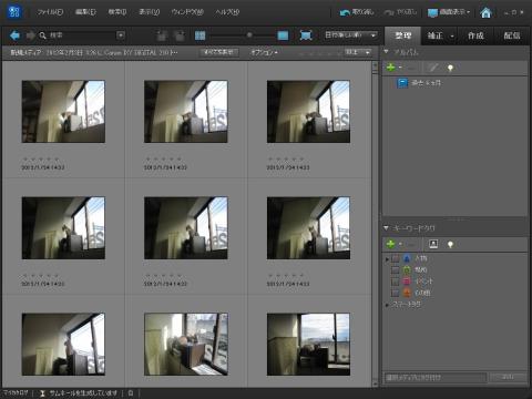 ちなみに右上の設定をクリックすると起動時の設定を変更できます。まず「整理」というのを選択してみました!「Elements Organizer」が起動します。「編集」を選択すると「Photoshop Elements Editor」が起動します。