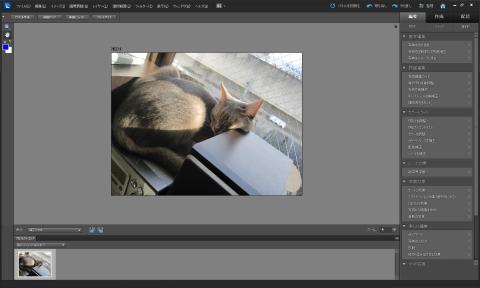 実際の編集は後で紹介しますが、編集までの手順をご紹介します!写真を右クリックして「Photoshop Elements Editorで編集」を選択すると編集画面になりました。