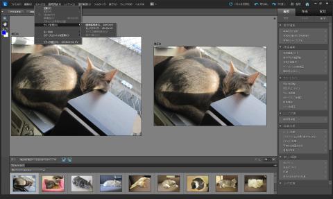 ではまずは写真を取り込みます。色々な場所から取り込めますが、今回はカメラとパソコンを接続して取り込みました。こんな感じで写真が並んでいます。ダブルクリックすると大きく表示されます。画面表示→写真を並べて比較を選択すると写真を並べて比較できます。