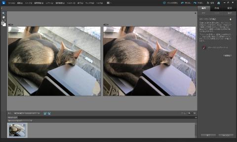 まずは「Elements Organizer」にて、補正のタブがあったので試しました!自動スマート補正、自動カラー補正、自動レベル補正、自動コントラスト、自動シャープを実行!確かに変化がわかります。