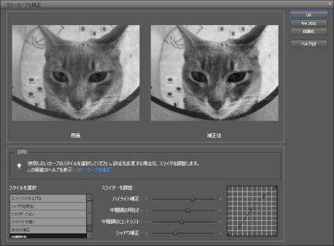 次に色々補正しようかと思ったのですが、モニタで見ているものと印刷物に違いがあるかもしれませんので、