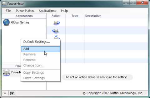 このソフトでPowermateの動作をアプリケーションごとに設定できるのがとてもいいところだと思います