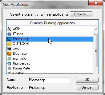追加可能なアプリケーションは起動中のもののみのようです
